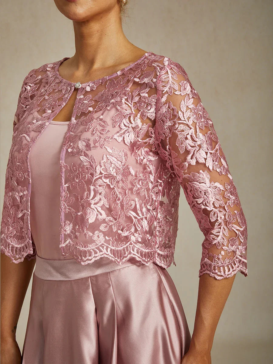 Silver Glitter Lace Jacket with 3/4 Sleeves