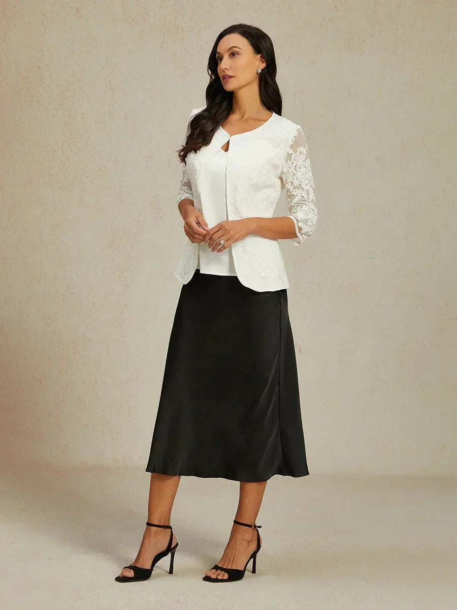 Chic Embroidered Lace Jacket with Rhinestone Button