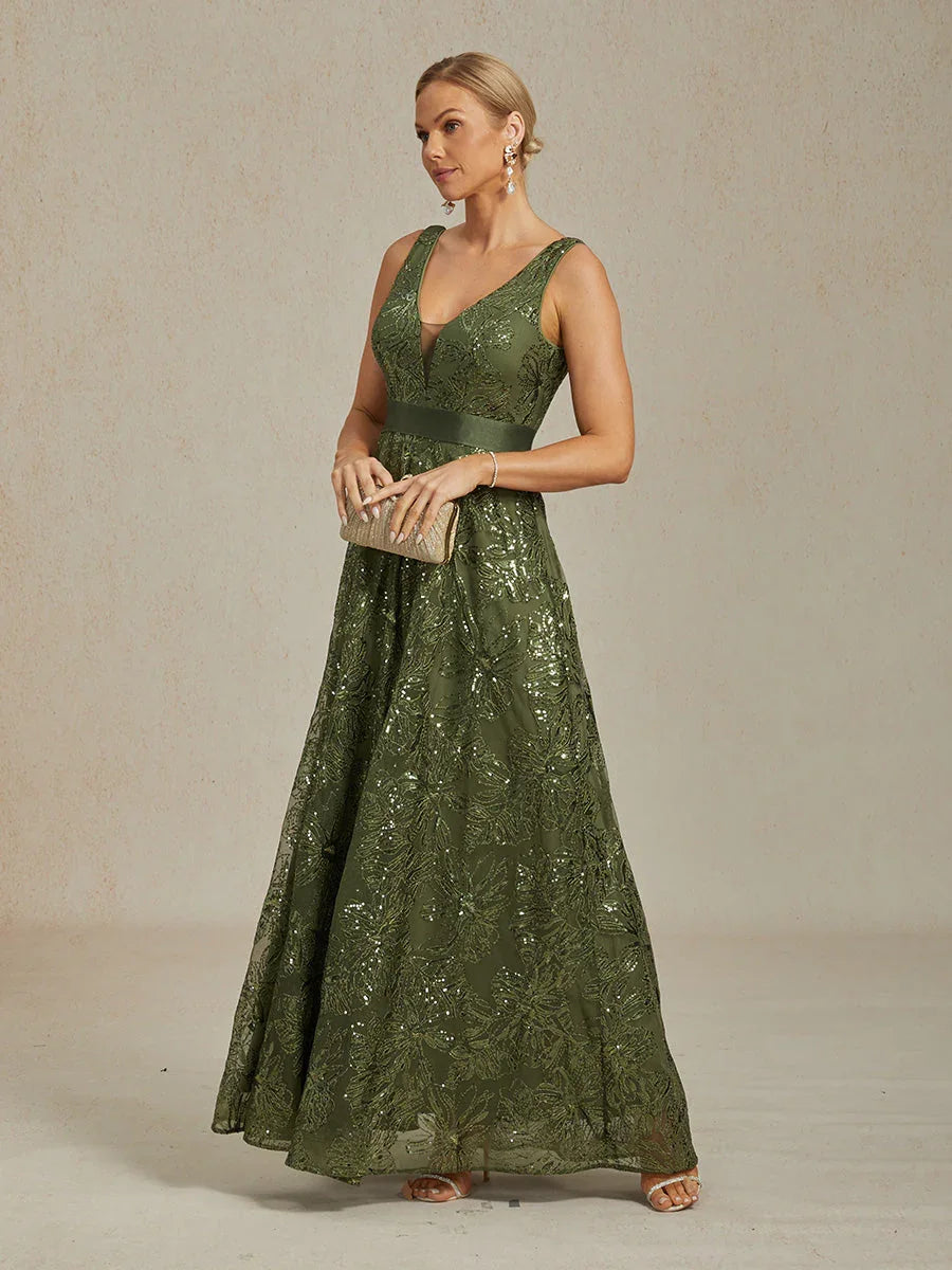 This maxi dress features dazzling floral sequin embroidery and a flattering V-neckline, paired with a dramatic low U-back for a bold, elegant statement. The flared skirt flows gracefully with every step, creating a romantic silhouette. Perfect for weddings, formal events, evening parties, or any occasion where you want to turn heads.