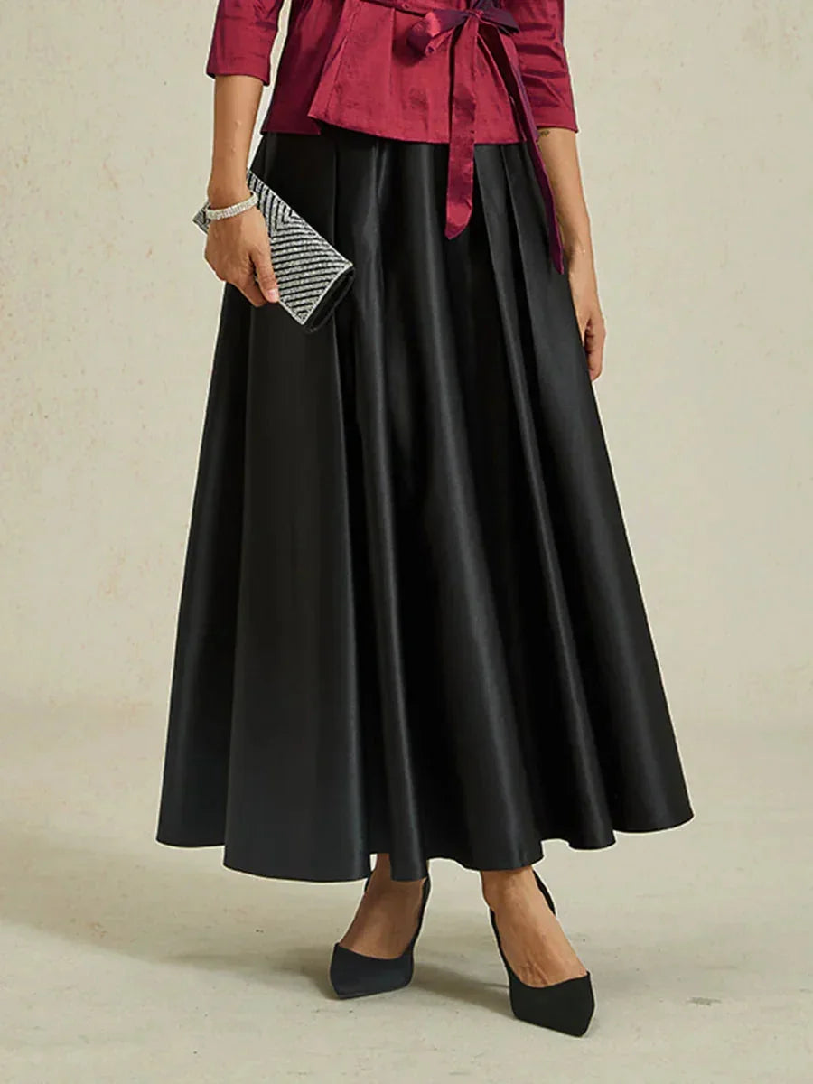 Turn heads with this elegant satin ballgown skirt, designed to flatter and impress. The full-length silhouette and structured inverted pleats offer graceful volume, while the smooth satin fabric provides a luxurious sheen. Functional side pockets add a modern and practical touch, and a secure zipper closure ensures a polished fit. Pair it with a structured blouse or evening top for weddings, galas, and other formal events.