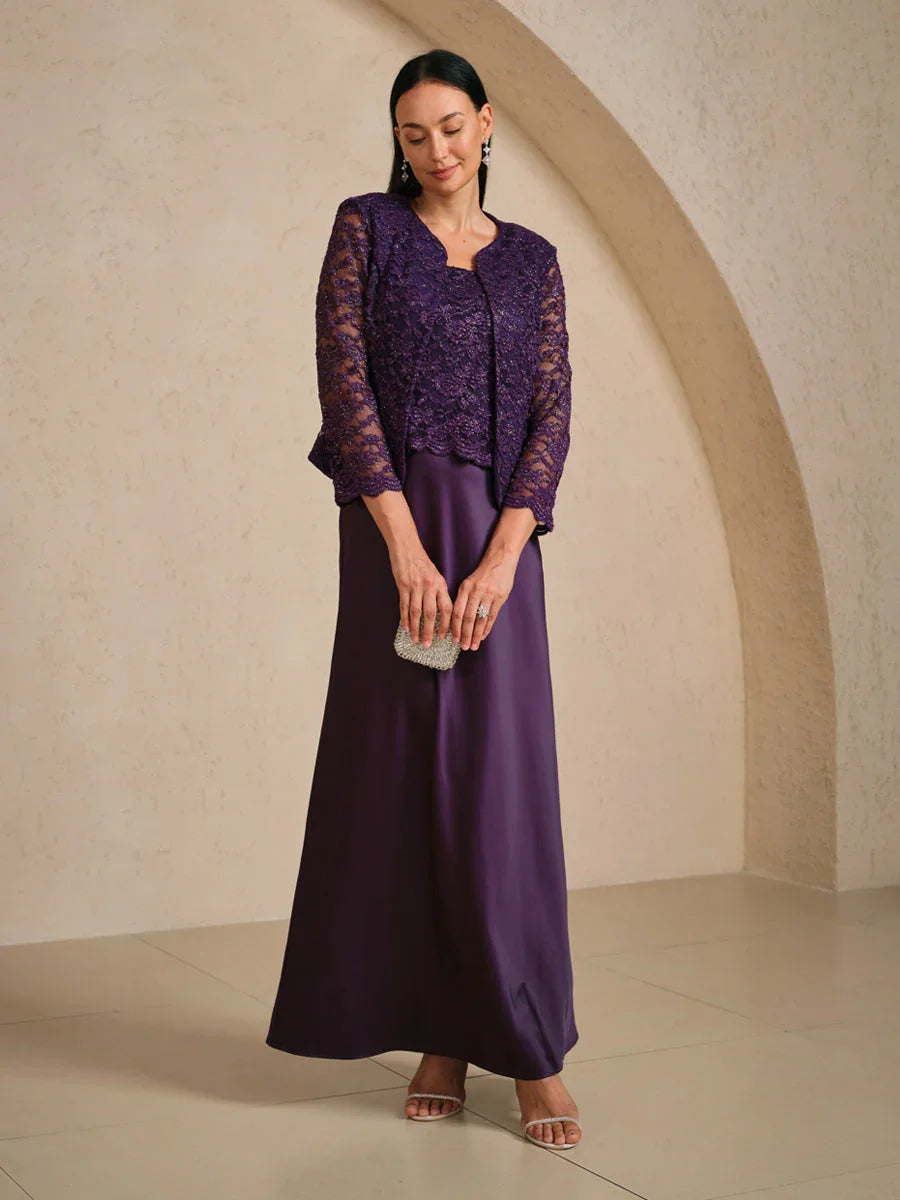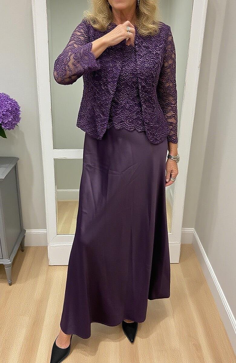 A graceful choice for milestone moments, this two-piece jacket dress features a shimmering glitter lace jacket with soft shoulder pads and a flattering mid-waist cut. The jacket?¡¥s 3/4 sleeves sleeves and soft stretch lining ensure comfort, while the matching satin a-line dress flows elegantly with every step. Perfect for mothers of the bride, formal celebrations, and evening receptions, this ensemble combines beauty, comfort, and timeless elegance. Style it with understated jewelry and heels for an effortlessly polished finish.