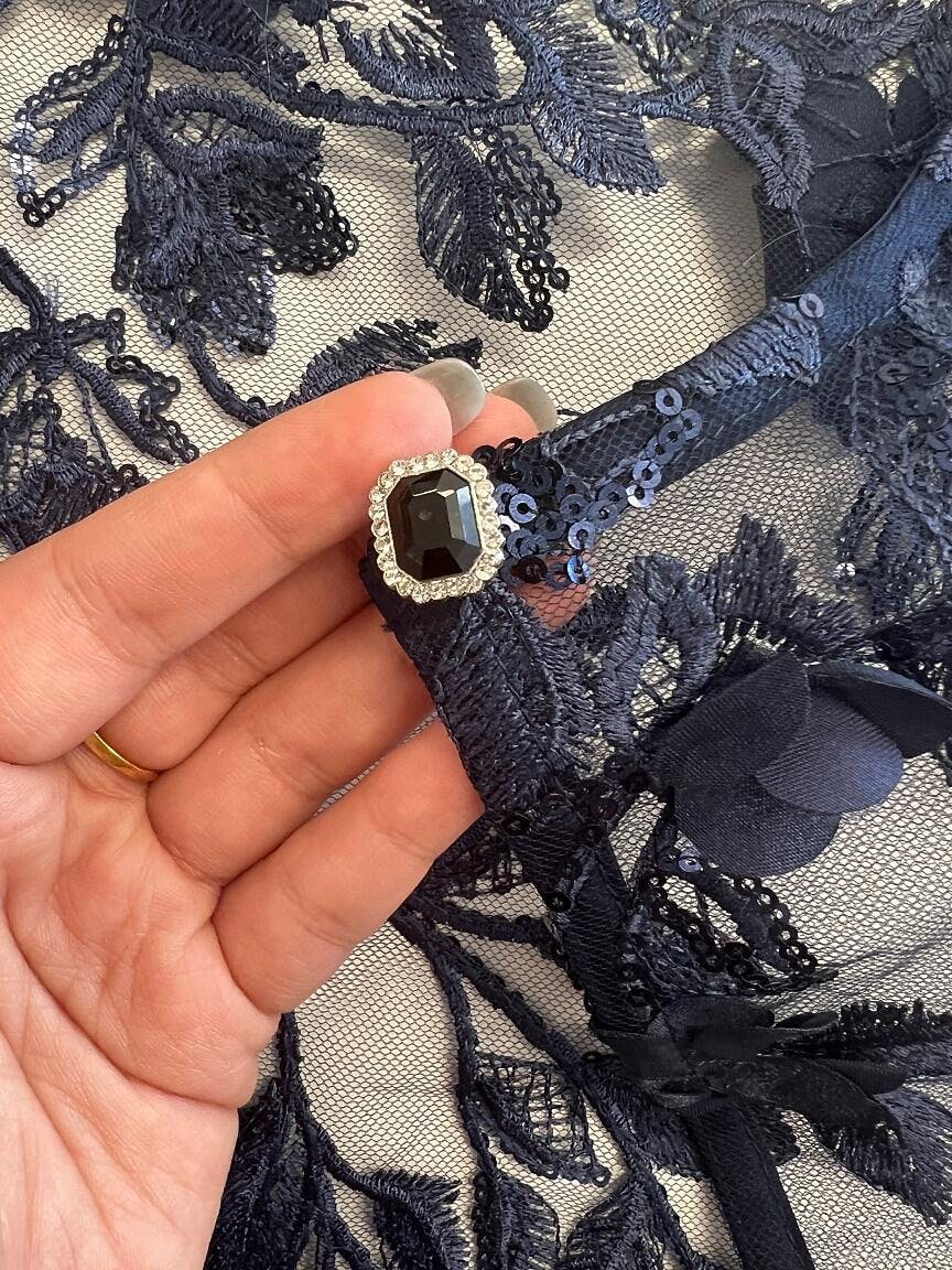 This elegant embroidered lace jacket showcases stunning 3D floral appliqu¡§|s combined with shimmering sequin mesh that catches the light beautifully. Featuring a sophisticated faux rhinestone clasp, it offers a refined finishing touch to the design. The jacket is tailored with flattering 3/4 sleeves and a waist-length cut, creating a polished silhouette. Crafted from structured mesh fabric, it adds texture and depth to any outfit without compromising on style. Perfect for layering over dresses or separates, this jacket is ideal for weddings, cocktail parties, evening events, and other formal occasions where you want to make a graceful statement.