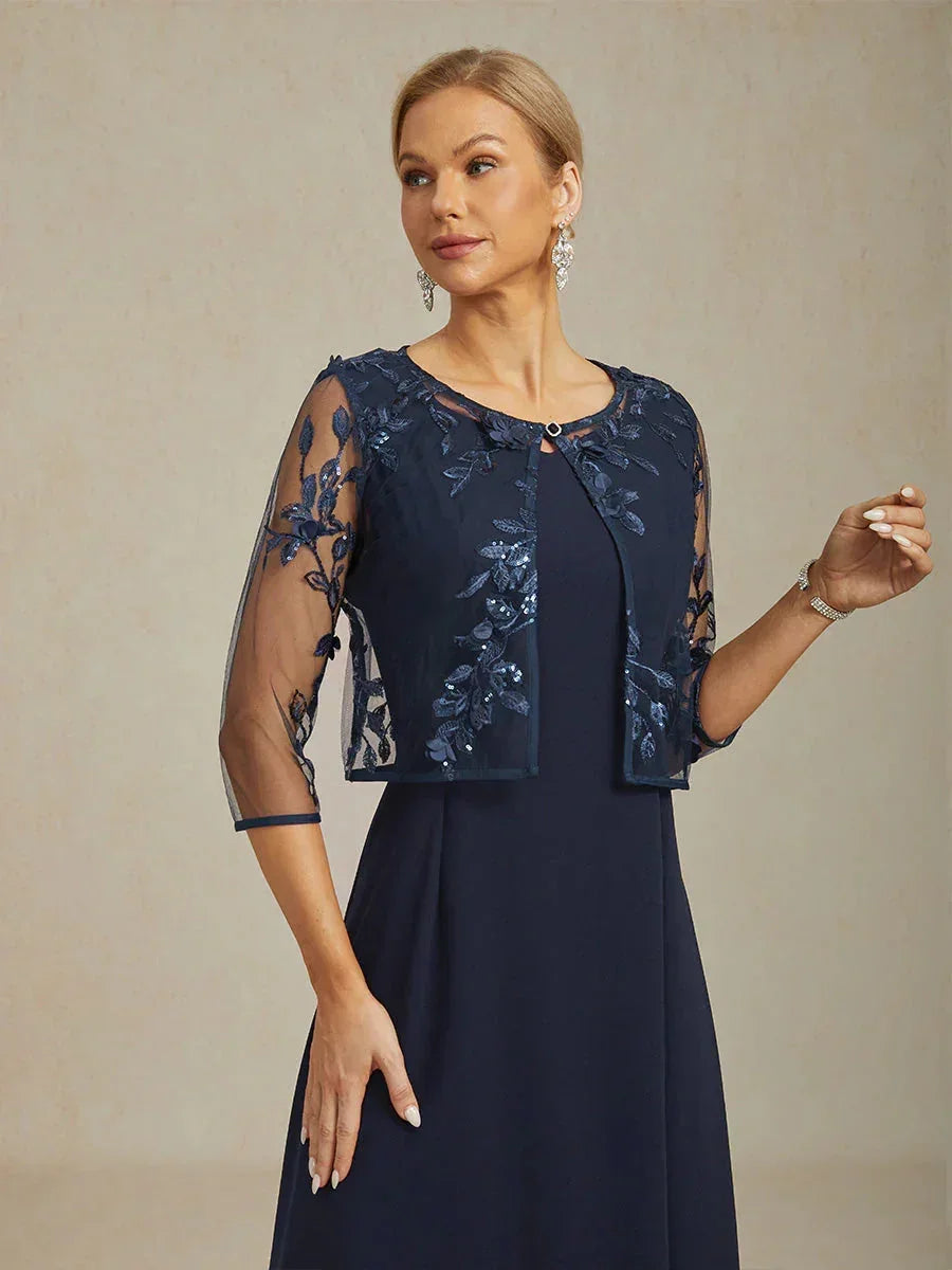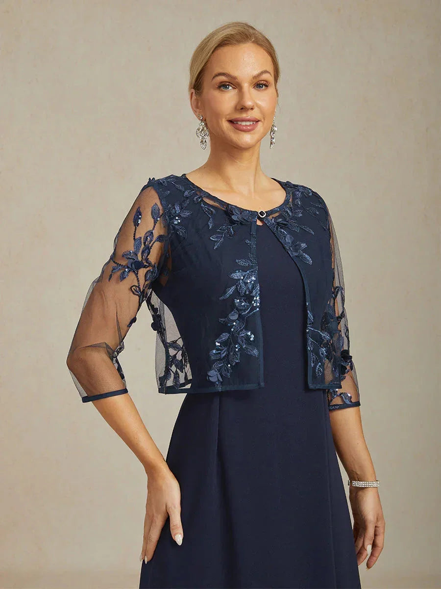 Graceful Mesh Lace Jacket with 3D Floral Embellishments