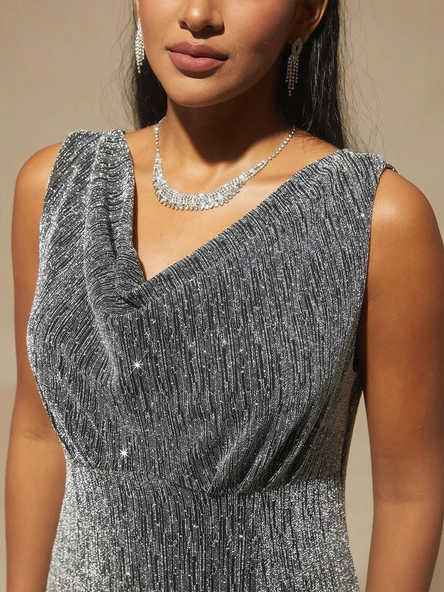 High-Stretch Velvet Sleeveless Midi Dress with Cowl Neck