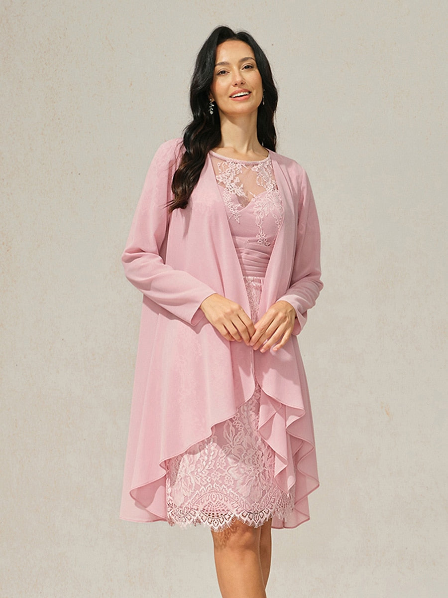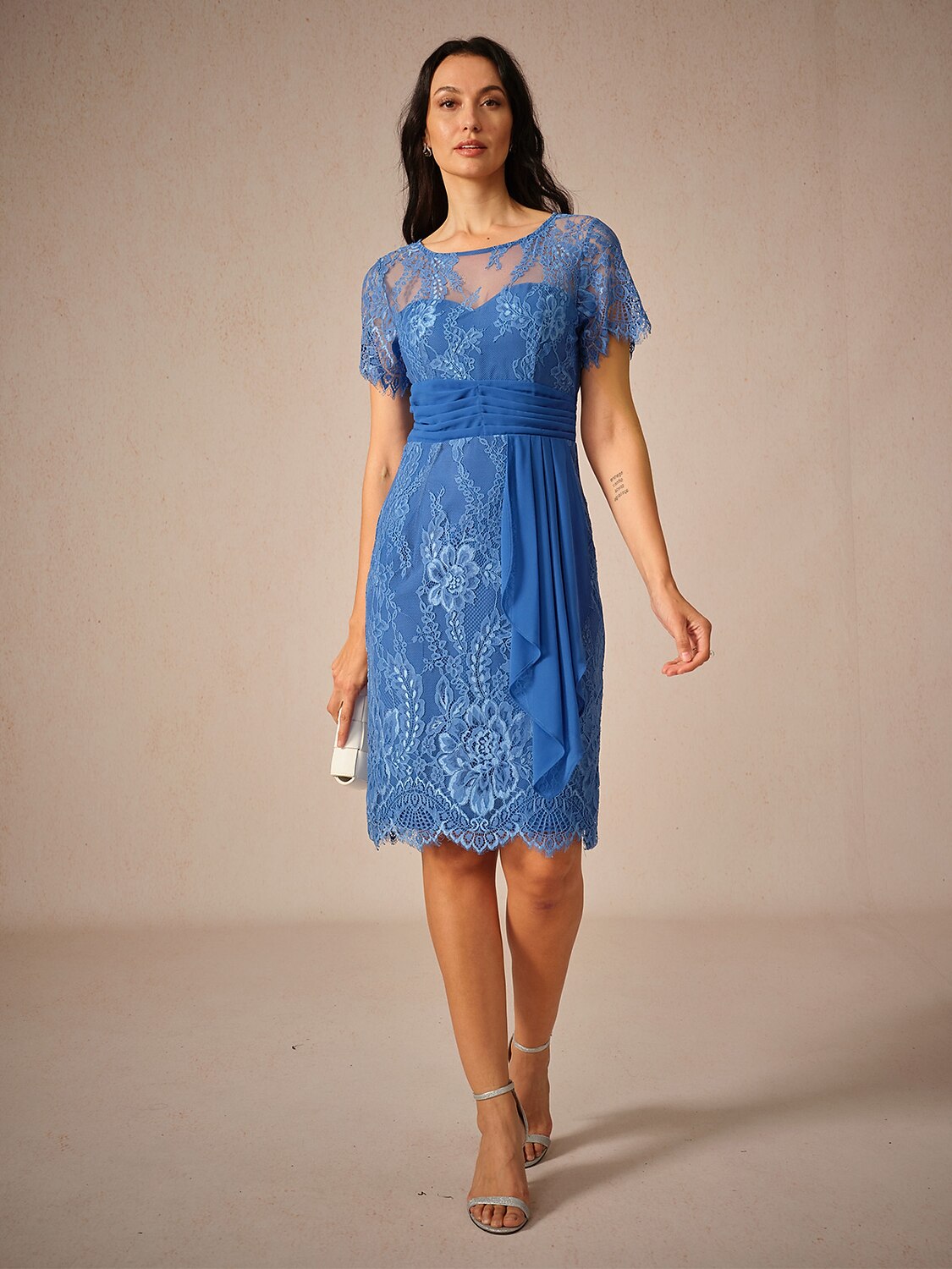 This exquisitely crafted lace-trimmed dress blends demure sophistication with subtle allure through strategic sheer panels at the neckline and sleeves. The fine-gauge lace (reminiscent of 1940s French lingerie couture) creates delicate transparency, while eyelash edging on cuffs and hem adds couture finishing. A tiered chiffon waist sash introduces graceful movement, perfectly complementing the knee-skimming silhouette designed for discerning mature women.