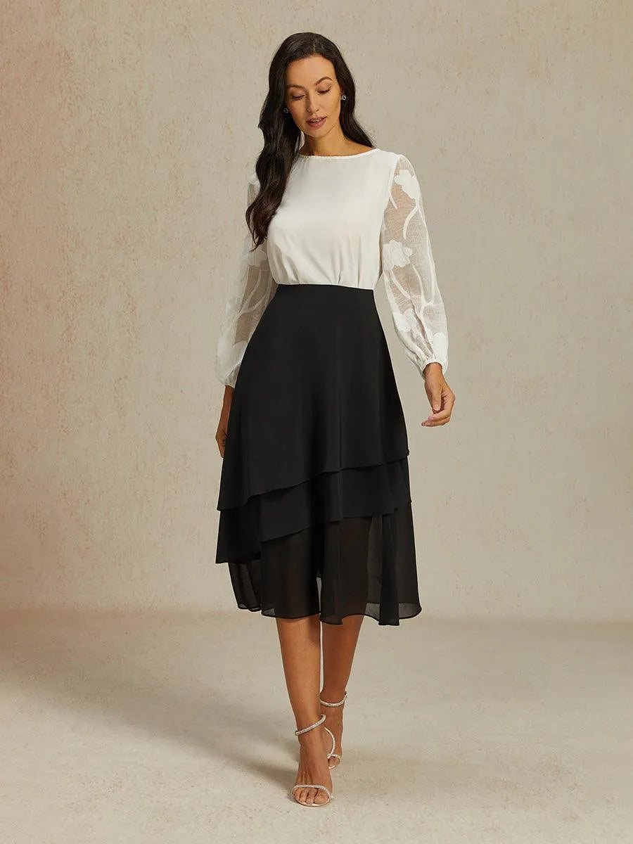 Elegant Lace and Chiffon Tea-Length Dress
