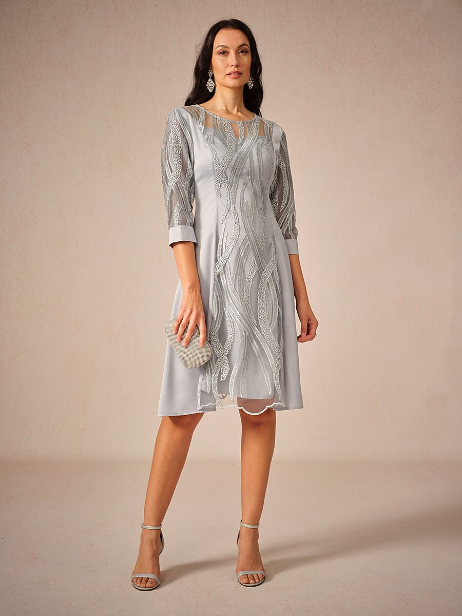 Sleeveless Glitter Lace Satin A-Line Dress with Silver Glitter