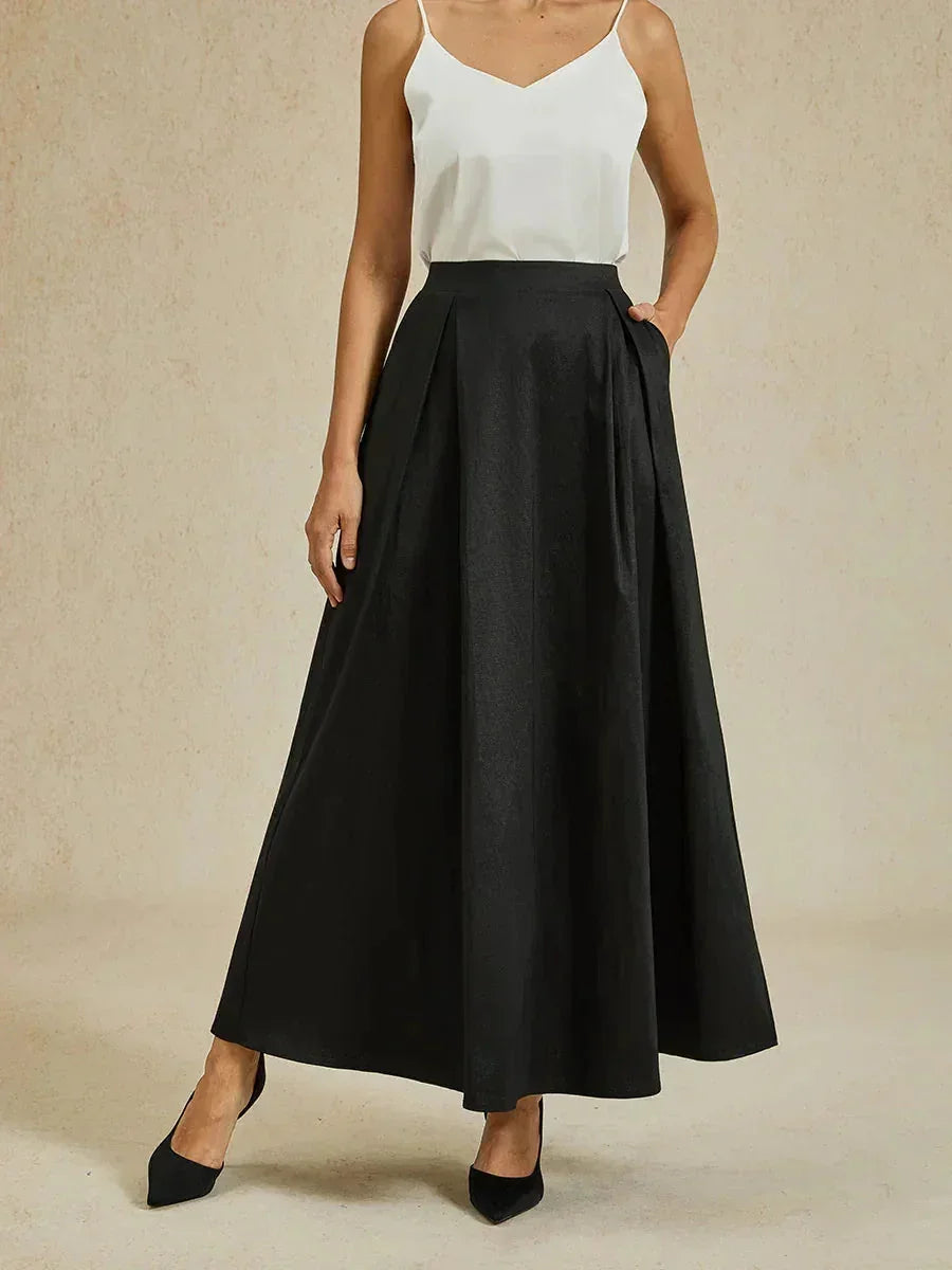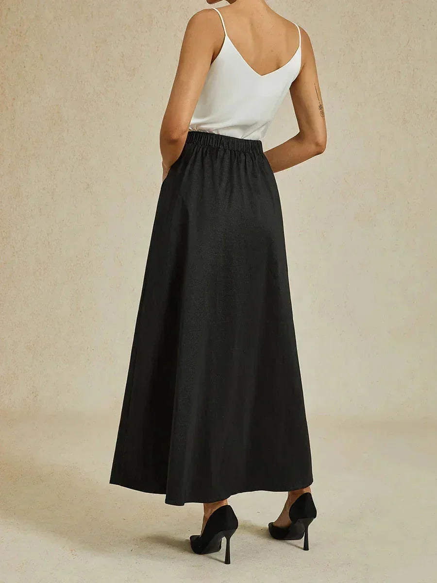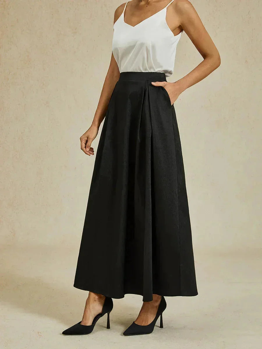 This long full taffeta skirt brings timeless elegance to any wardrobe. The high-quality stretch taffeta fabric offers a subtle sheen and structured volume that flows gracefully with movement. Featuring a flat front waistband and an elasticized back for added comfort and flexibility, it blends tailored elegance with everyday ease.?, it pairs beautifully with blouses, jackets, or twinsets. Ideal for formal occasions or special celebrations.