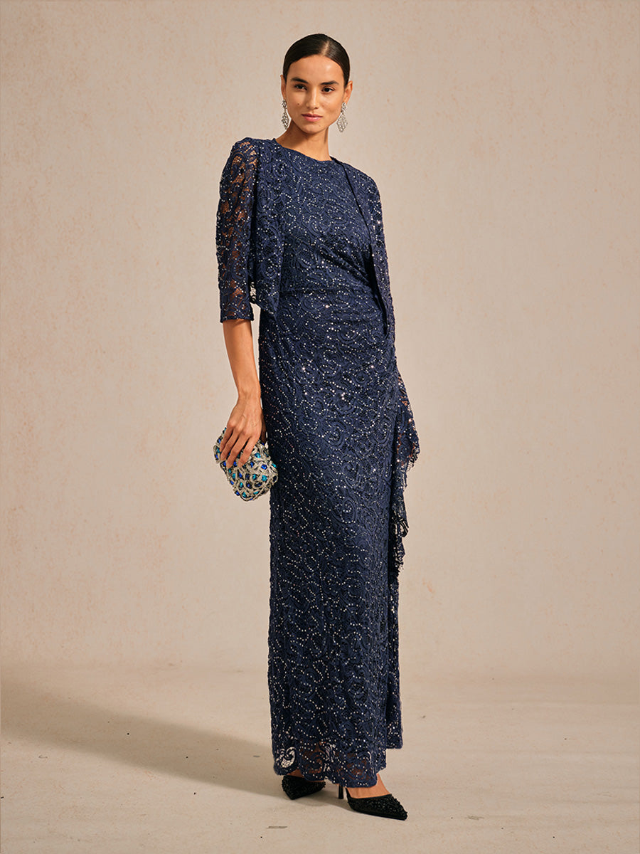 Ruffle Ruched Lace Maxi Dress