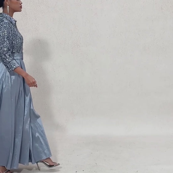 This sophisticated long A-line dress is designed with exquisite details for both elegance and practicality. The paisley-patterned sequin embroidered bodice adds a luxurious touch, while the structured silhouette flows into a graceful full-length skirt. Designed with a front opening and a convenient back zipper, this gown is easy to wear. Functional side pockets add modern utility, and the detachable belt allows you to style the waistline to your preference. Perfect for weddings, formal dinners, and evening celebrations, this dress combines timeless beauty with thoughtful comfort.