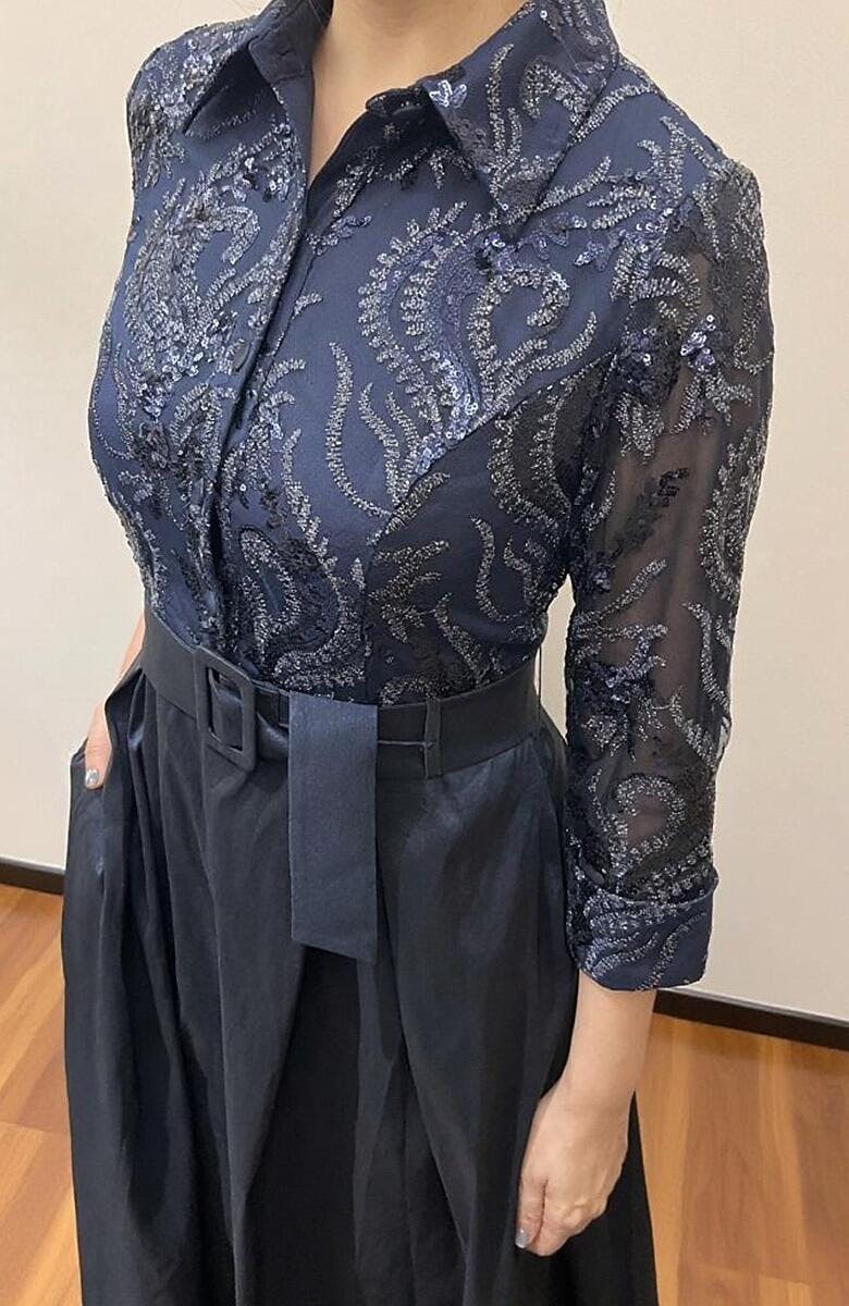 Navy Sequins Mesh Midi Dress