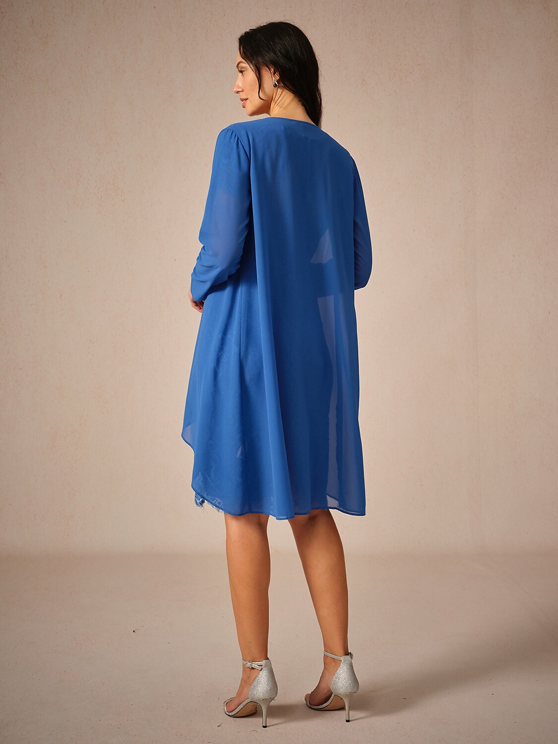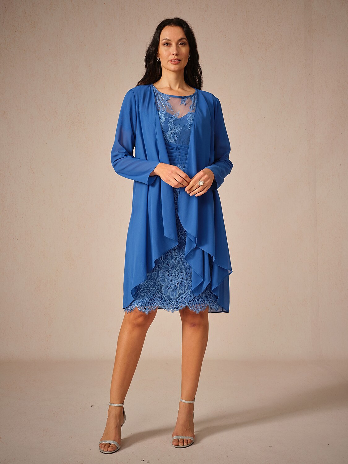 Elegant Knee-Length Lace Dress With Sheer Chiffon Jacket