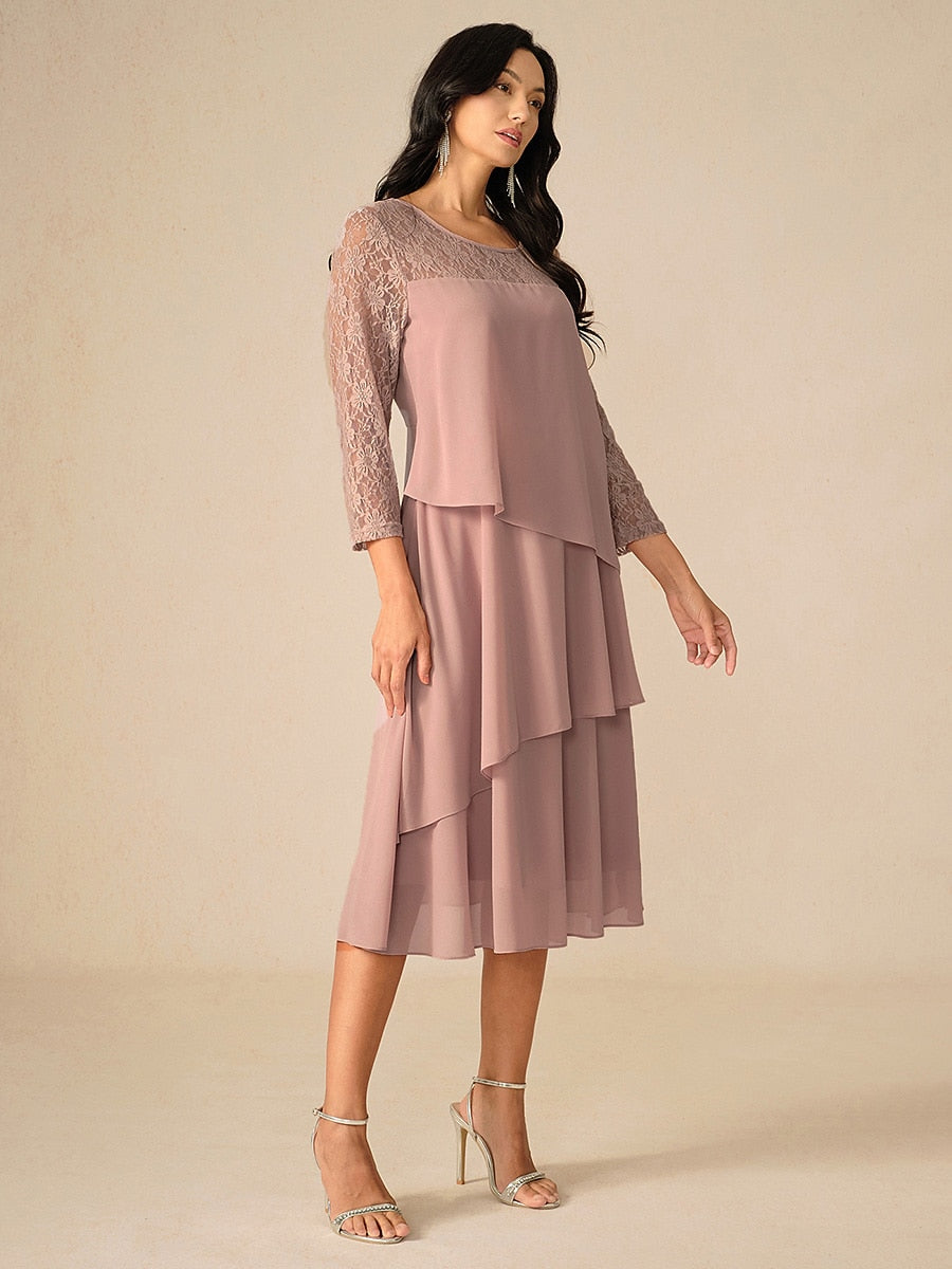 Elegant Lace and Chiffon Tea-Length Dress