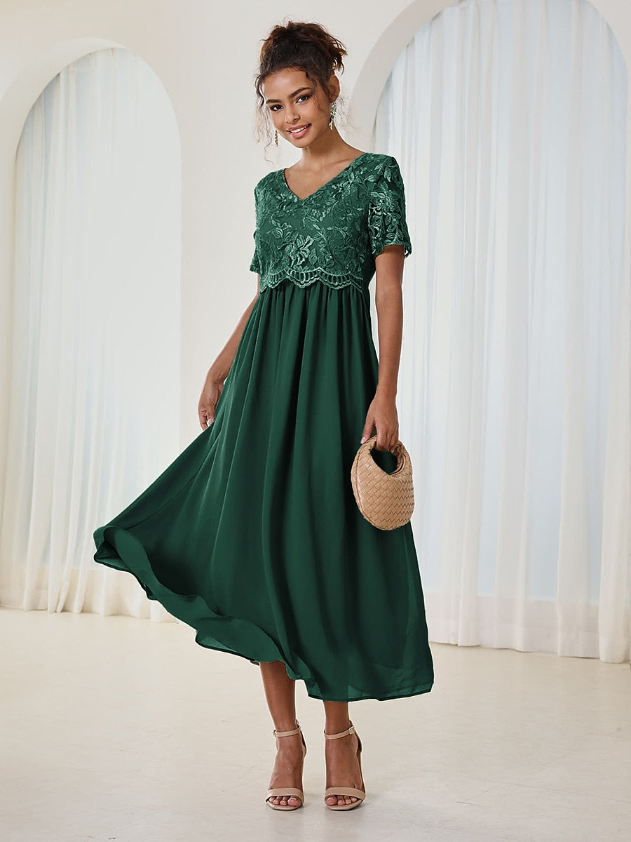 Elegant Lace and Chiffon Tea-Length Dress